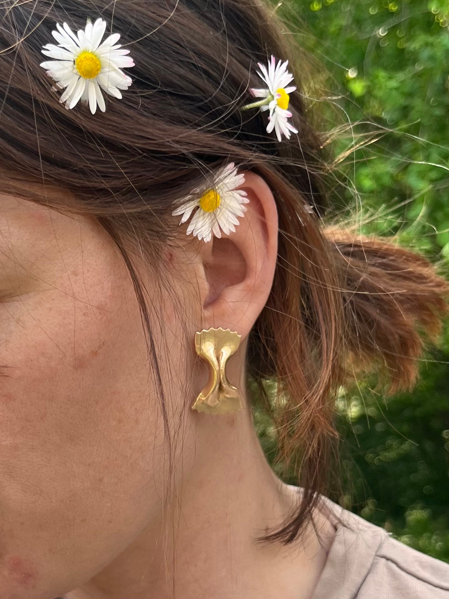 Bronze a great alternative to gold, affordable and wont lose its colour, like plated jewelery. Bronze can easily be polished back to its original golden tone